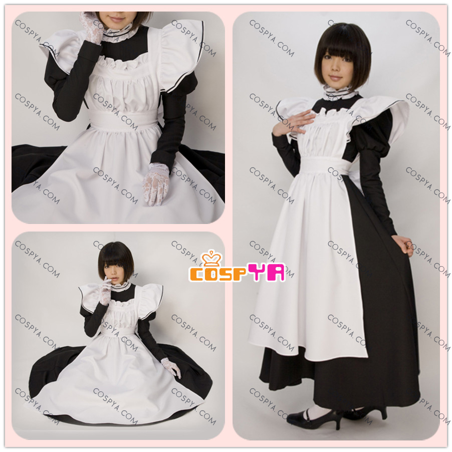 ブラックロングメイド服 コスプレ衣装 メイドドレス コスチューム衣装