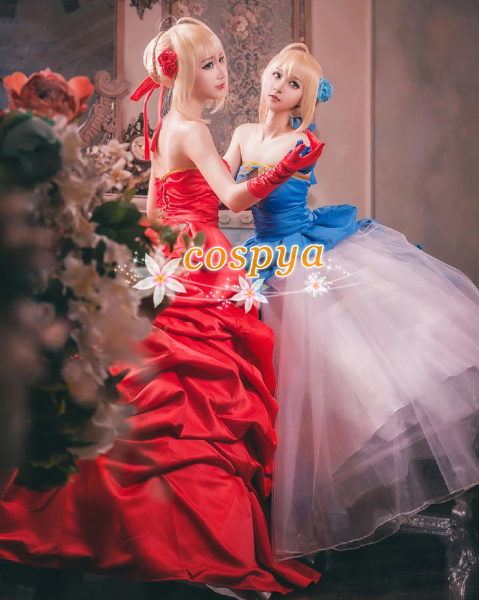 - FATE/ZERO TYPE-MOON10周年 Saber コスチューム 赤 青 ドレス セーバー コスプレ衣装