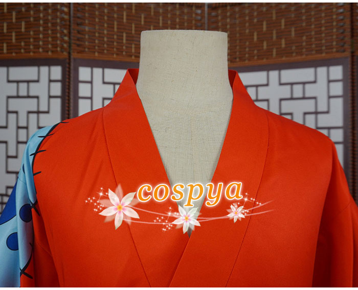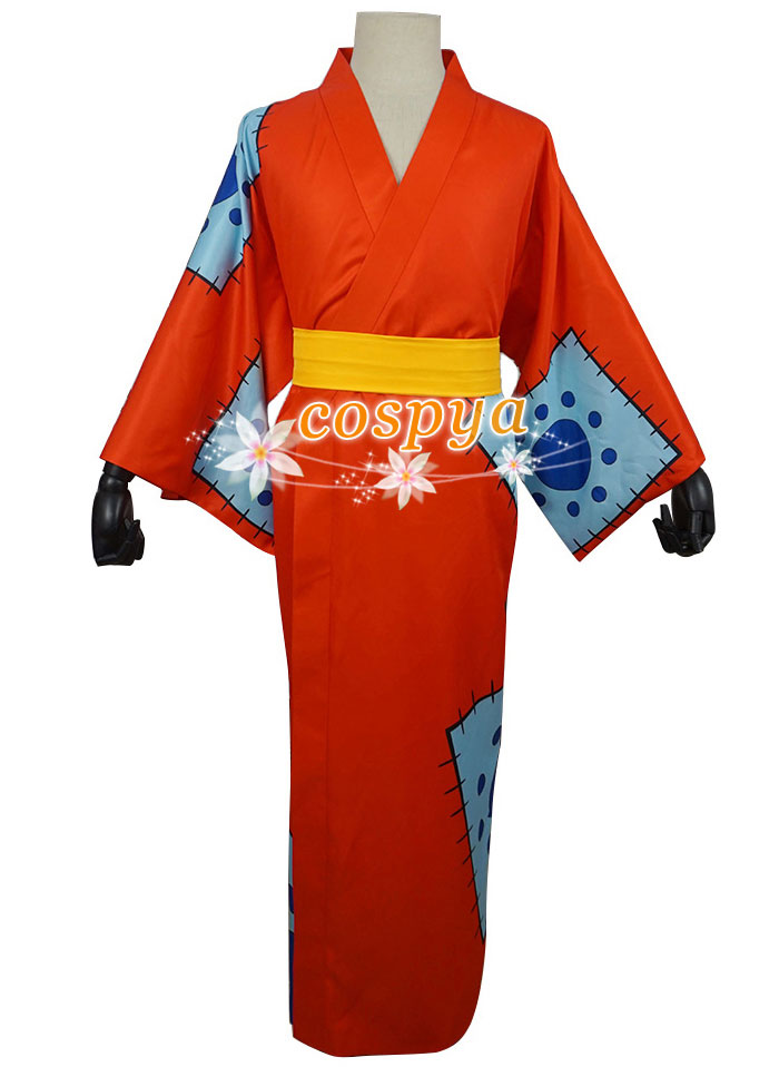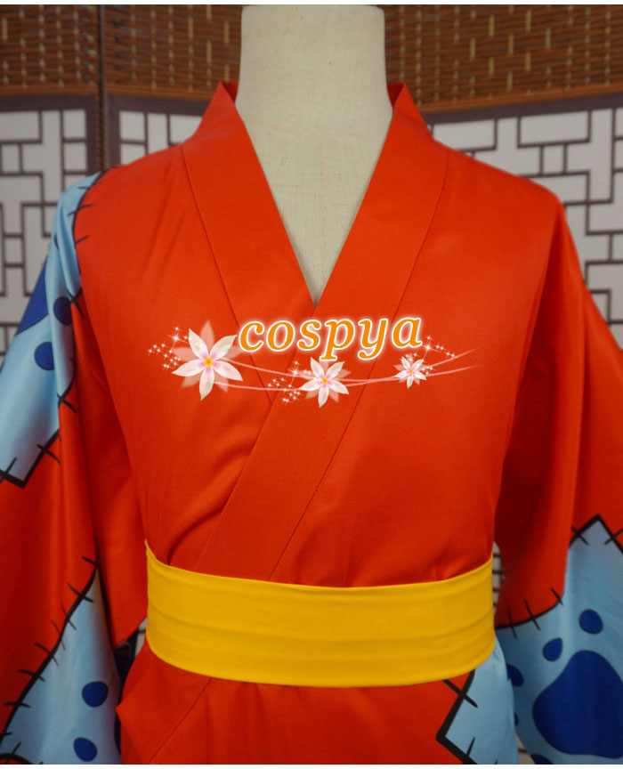 - ワンピース ONE PIECE ワノ国 ルフィ 和服 オレンジ 柔らか生地 コスチューム