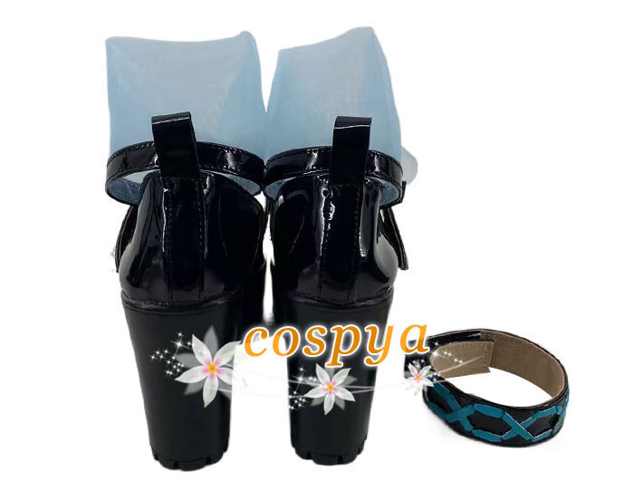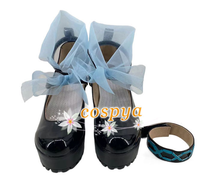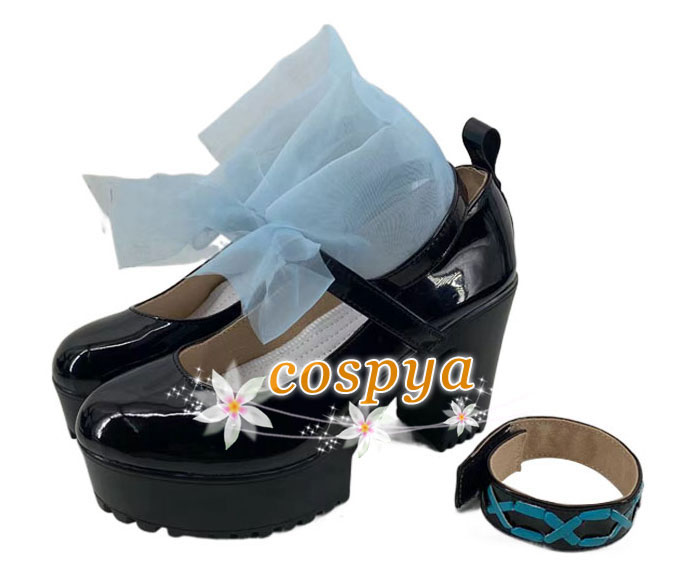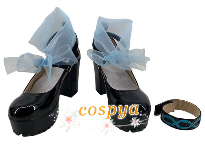 アークナイツ 純燼エイヤフィヤトラ コスプレ靴 オーダーメイド 黒い色 水色リボン 可愛い