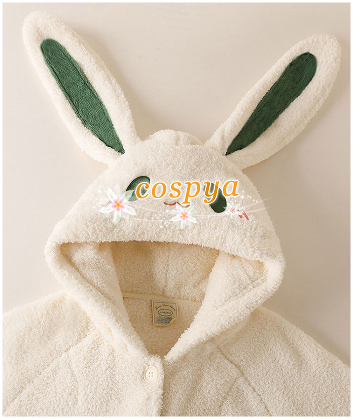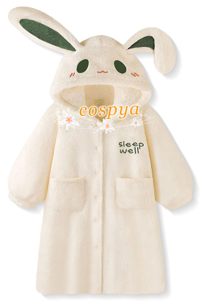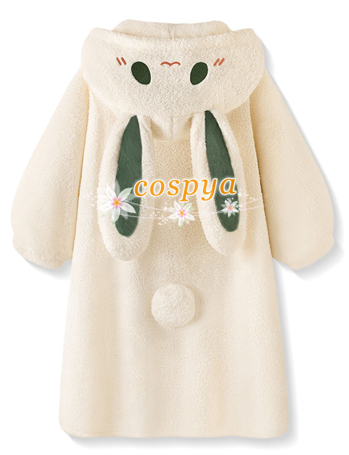 パジャマ 白いウサギ かわいい 暖かい アニメ風 部屋着