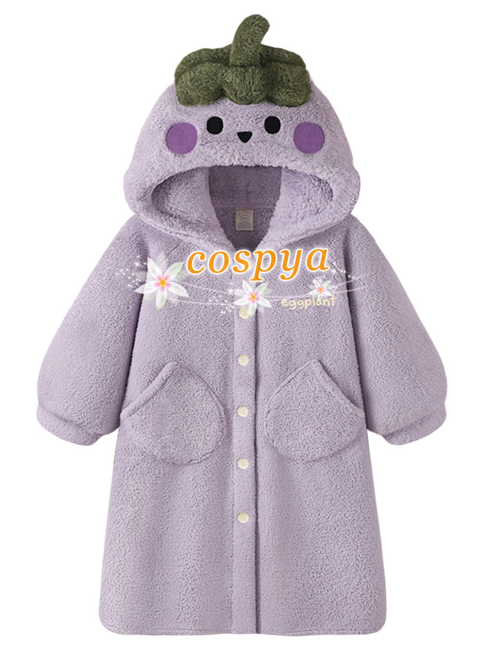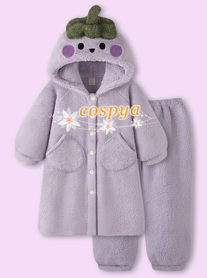 パジャマ 紫なす 部屋着 かわいい アニメ風 暖かい