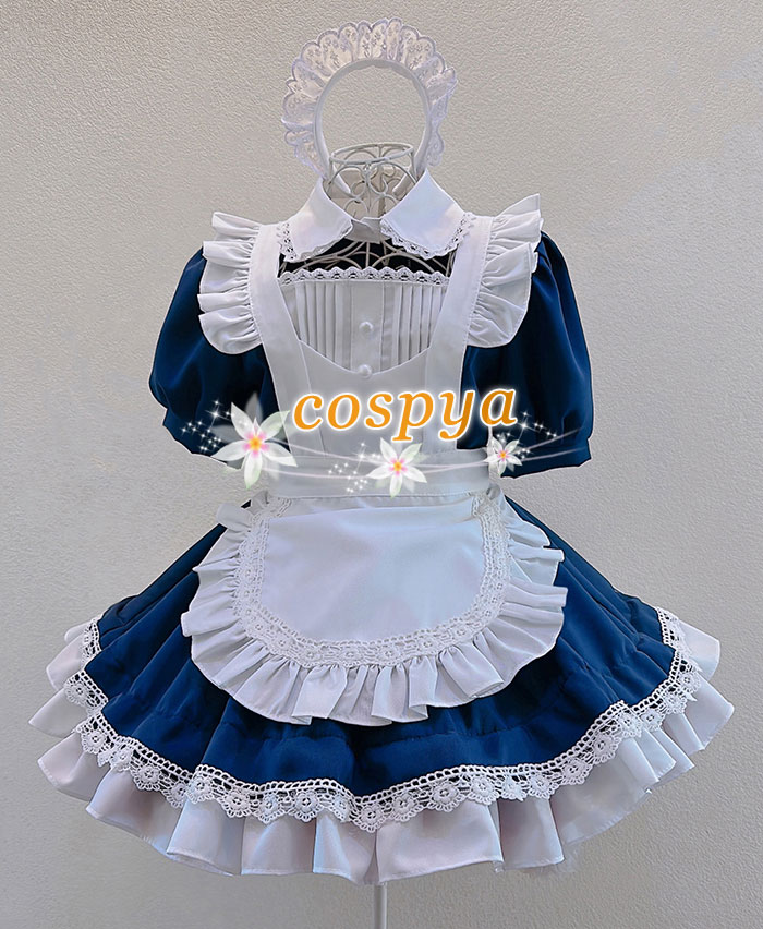 メイド服 撮影 かわいい オーダーメイド コスプレ衣装 コスチューム 大きなリボン 青と白