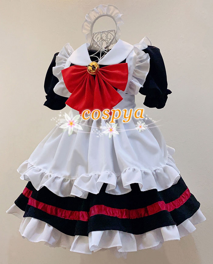 メイド服 オーダーメイド 大きなリボン コスチューム 鈴付き 赤黒白 赤色蝶結び