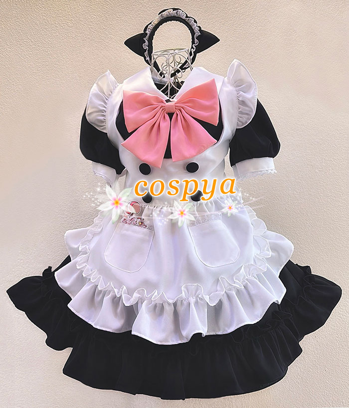 メイド服 撮影 オーダーメイド 荷葉フリル 変装 ピンクなリボン 白黒 コスチューム