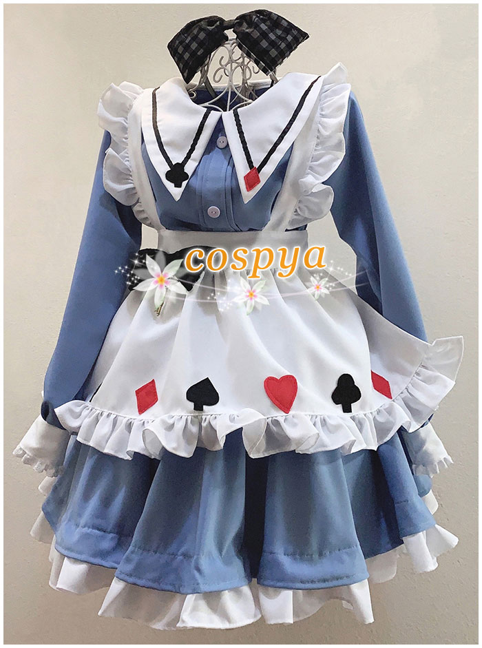 メイド服 ロング袖 可愛い柄 変装 コスチューム 喫茶店ドレス 青白い色 オーダーメイド