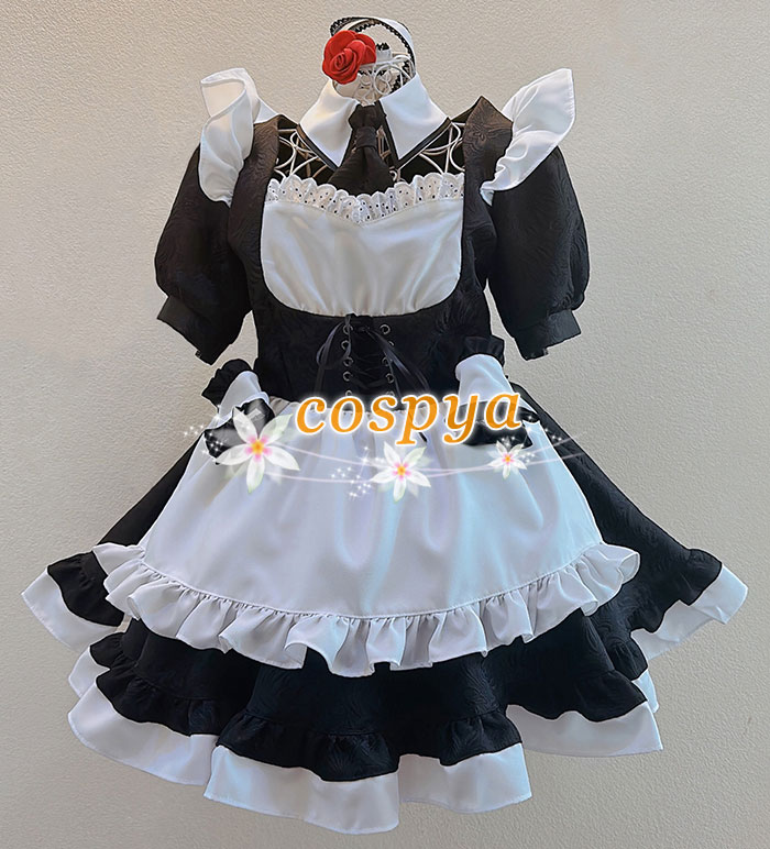 メイド服 撮影 大きなリボン 変装 オーダーメイド 白黒 荷葉フリル コスプレ衣装 喫茶店