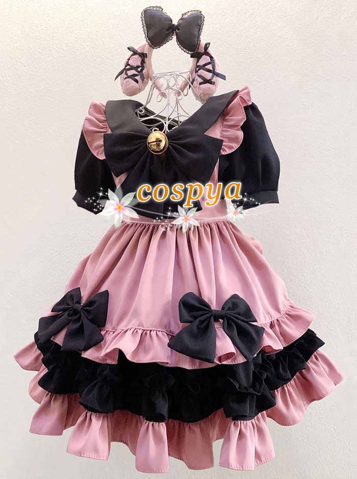 メイド服 スカート オーダーメイド 鈴付き 撮影 コスチューム 喫茶店 ピンクブラック コスプレ衣装