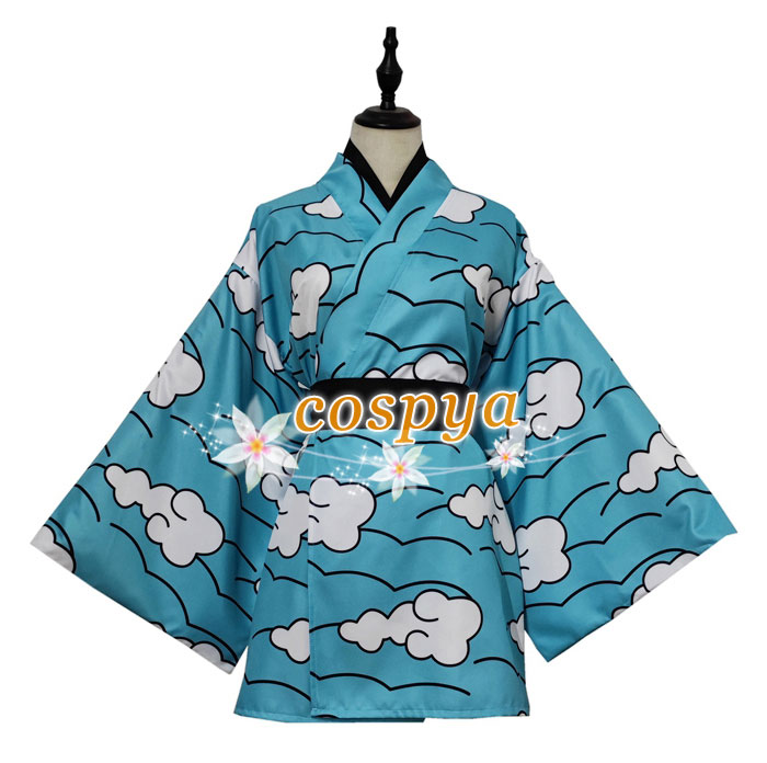 - 鬼滅の刃 最終選別 竈門炭治郎 かまどたんじろう 鱗滝左近次 水色 雲柄着物 コスプレ衣装 仮装 コスチューム