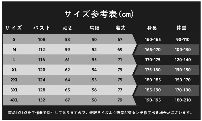 サイズ:子供用、S、M、L、XL、2XL、3XL、4XL